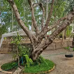 🔆Kad Tong Tung 🔆@Baan Rim Nam is a new market in the Ruam Chok area. The market is not too small or too big. The atmosphere is shady with big trees. It just opened not long ago. It is located in the Rim Nam Village area, on the main road of Chiang Mai - Phrao. Inside, there are many products for sale: home decorations, handmade products, ready-to-eat street food, famous suki restaurants, som tam restaurants, milk and butter desserts, Thai desserts, bakery, fresh vegetables, fresh fruits, fruit juices, teas and coffees. There are many to choose from. There is a cute cafe where you can sit and listen to music and enjoy the atmosphere. 🎶🎵