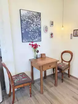 A coffee shop outside the city with a great atmosphere. Turn 50 meters from the main road. When you turn in, you won't believe that there is a shop with a foreign feel hidden here. The shop has a variety of drinks and food to choose from. Every table has a beautiful corner and light. I can't decide where to sit. It's definitely perfect for photography lovers.