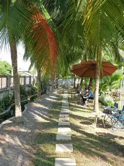Today, we're taking you to a secret cafe in San Sai District. This shop is called "Teahouse". The shop is a teahouse decorated in a Chinese style, arranged in a garden. It's shady. You can sit and drink tea, chill out in the garden, listen to the sound of flowing water. It's perfect when you're in the hot weather and come to relax at the shop.