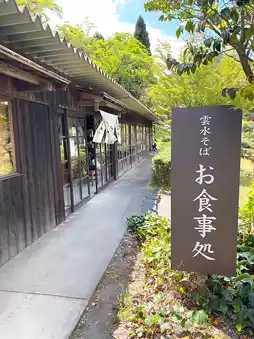 ☝ During a visit over a holiday, there were 18 groups ahead, and the wait was about 30 minutes. Ordered the Unsu Soba (a mix of grated radish and yam, priced at 1,050 yen) and tempura. There are pet-friendly seats outside, but they can be used even if you don’t have a pet. There’s also a dojo where you can experience making soba noodles.