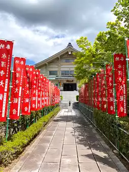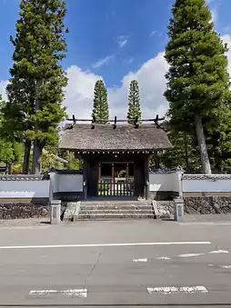 ☝ This Zen temple was established around 1370. The main hall was rebuilt in 1778, and visitors can freely worship the Great Kannon Bodhisattva. The temple features one of only two thatched imperial envoy gates in Japan, welcoming worshippers. It is the 11th site among the 25 Kansai Flower Temples, and in April, visitors can enjoy the moss phlox. Unfortunately, in 2025, the peony garden in May and the iris garden in June will be closed. The soba noodles here are also famous, but please make sure to check the business days before visiting.