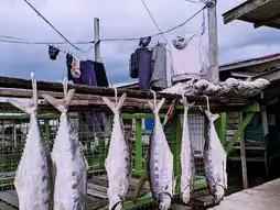 Rolled into **Kg Pukat**—a sleepy stilt village near Kota Kinabalu—where wooden houses perch over turquoise water, fishing nets dry in the sun, and the air smells like **salt, seaweed, and last night’s grilled ikan**. No resorts, no tour buses—just *real* Sabah coastal life.