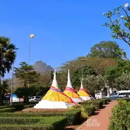 Three Pagodas Pass is located in Nong Lu Subdistrict, Sangkhla Buri District, Kanchanaburi Province. It is a long row of three white pagodas with an octagonal base and beautiful pointed tops. It acts as a border connecting Sangkhla Buri District, Kanchanaburi Province with Phraya Tongsu District in the southern part of Karen State in Myanmar.