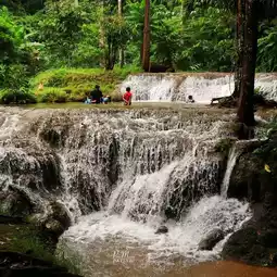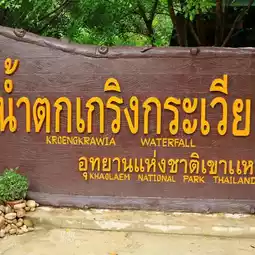 Kring Kravea Waterfall is located in Khao Laem National Park, Sangkhla Buri District, Kanchanaburi Province. It is a small waterfall formed by Kring Kravea Stream flowing down through limestone layers, creating a waterfall about 5 meters high, surrounded by nature, with large and small trees covering the entire waterfall area.