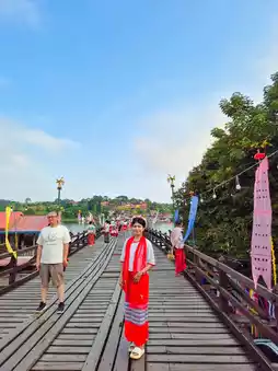 Uttamanusorn Bridge (Mon Bridge) is the longest wooden bridge in Thailand, with a length of 850 meters and is the second longest wooden bridge in the world after U Bein Bridge in Burma. It crosses the Songkhla River and was built under the initiative of Luang Por Uttama.