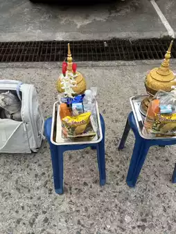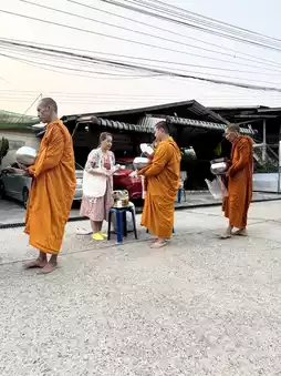 In the morning, monks will come from Wat Luang Pho Utama and walk to receive alms from tourists. The locals will bring dry goods