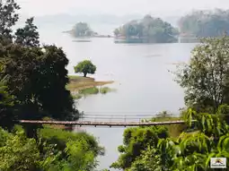Located in Khao Laem National Park, it is a tourist attraction with natural beauty, surrounded by mountains and the Vajiralongkorn Dam Reservoir. This place is nicknamed "Pang Ung of Kanchanaburi" due to its peaceful atmosphere and beautiful view, especially during the winter and rainy seasons when you can see the fog floating above the water surface. It is also one of the most beautiful sunset viewing spots in the western region of Thailand.