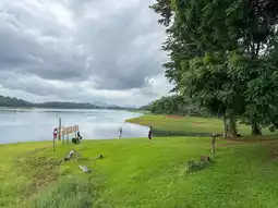 The shimmering water reflects the light beautifully. The best time to visit is in the evening when the sun is about to set, casting a golden glow over the reservoir and distant mountains.