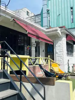 This unique place has a unique exterior, and all drinks are served in plastic bags.
