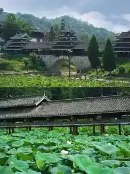 The lotus pond at the Three Kings Palace in Heri is a photo-taking spot that cannot be missed. The bright red and emerald green are intertwined, and the ancient wind and rain bridge stands quietly as the background. It is so beautiful that it seems to have crossed into an ancient painting. Try the crispy lotus pastry freshly baked, then sit back and enjoy a heart-warming bowl of oil tea and watch the fish frolicking among the lotus leaves.