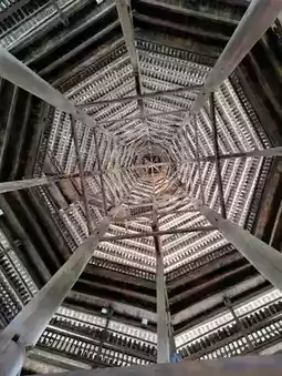 The drum tower stands at a height of 42.6 meters and is considered the tallest among Dong ethnic settlements in China. Supported by 56 large pillars, the drum tower is intricately constructed with a 27-story structure, assembled almost entirely without nails, using mortise and tenon joints. For 15 yuan, you can explore the interior and even climb to the top. However, those with a fear of heights should take caution ⚠️