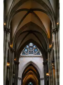 Sunlight streams through the gaps of Gothic architecture, casting golden dance steps, shadows leap on the cobblestone road, as if time itself is dancing~