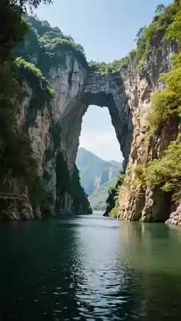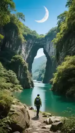 🏞️ Second stop: Moon Bay & Natural Bridge (get off and hike check-in points) The boat stops mid-route, allowing you to get off and visit two stunning spots: 🌙 Moon Bay: a crescent-shaped lake nestled among mountains, surrounded by green trees, so quiet you can hear water dripping, perfect for meditation, sketching, or moody photography. 🌉 Natural Bridge: a huge stone bridge formed by natural limestone caves, 50 meters high, 60 meters span; standing under it looking up, you marvel at nature’s craftsmanship! 📌 Hiking distance about 1.2 km, gentle and easy, suitable for elderly and children!