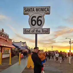 Visiting Santa Monica Pier in the evening felt like stepping right into a living painting, where the sky decided to show off every shade of pink and gold it could dream up. As we strolled along the wooden planks, the sun dipped lower and lower, casting a warm glow over the Ferris wheel until it looked like a giant, colorful halo. The waves rolled in beneath us with a soothing rhythm, and every few steps we had to stop just to take another photo of the breathtaking view—because honestly, it was impossible not to.