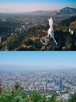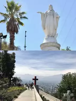 • Cerro San Cristobal: One of the highest points in Santiago and part of the Santiago Metropolitan Park. There is a white statue of the Immaculate Conception on the top of the mountain. You can take a cable car or hike to the top of the mountain to overlook the beautiful scenery of the entire city.