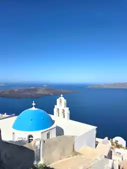 The Blue Dome is a symbol that you cannot miss when you arrive in Santorini. Tourists line up eagerly to take pictures with the blue dome. There are many angles for beautiful photos, depending on your creativity. The main cities on the island of Santorini are Fira and Oia, which you must not miss because of the beautiful buildings and stunning cliff views. Here, you can also see the Volcano or volcanic island up close. If you want to take a walk, you can buy a short tour to stroll around or enjoy the warm sea around the volcanic area. This makes Santorini a destination for tourists and couples on their honeymoon.