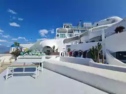 After entering, you can explore the brown P4 area (petal-shaped layout), the white P1/2 area (the main Santorini-style photo spot), the Western European town at the top (constellation-themed buildings), and the infinity pool.