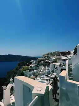 Seeing this view in person, which I had only admired in photos, was more than just visiting a tourist spot—it became a moment etched deeply in my heart. As the sky turned crimson at sunset, the blue domes revealed a different kind of charm, making me lose track of time.