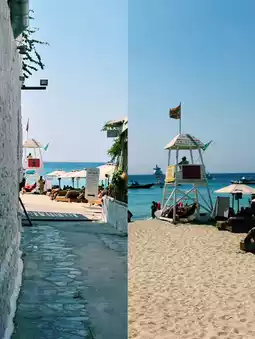 Walking through Oia Village in Santorini during the daytime feels like stepping into a picturesque painting. As you stroll along the alleys lined with white buildings and blue domes, you'll find small cafes and shops welcoming travelers, offering a moment of rest. The flowers blooming in every corner and the charming decorations make it a perfect spot for capturing beautiful photos.