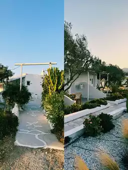 During the day, the village of Oia is quiet yet vibrant. Strolling through the alleyways lined with white buildings and blue roofs, exploring local cafes and shops is a delight. Browse handicrafts in small souvenir shops, or take a break with a refreshing drink on a sea-view terrace.