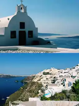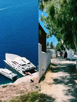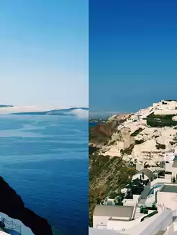 The sunlight streaming through Oia's white buildings was dazzling. The stone path felt warm beneath my feet, and the breeze carried the scent of the sea. Walking slowly along the path, every angle became a painting. The blue roofs, white walls, and the deep blue of the Aegean Sea seeping through them made my heart pause for a moment.