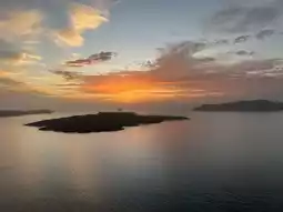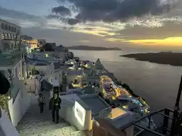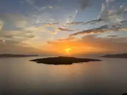 As the sun slowly sets into the Aegean Sea, its golden glow bathes the blue and white rooftops, making the entire Santorini feel as if time has paused.