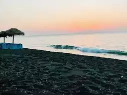 Renowned for its striking black sand and clear blue waters, Perissa Beach is ideal for relaxing, swimming, and enjoying water sports 🏄♀️☀️. With cozy beach bars and cafés along the shore 🍹, it’s the perfect place to unwind while soaking in the beauty of the Aegean sunset 🌅💫.