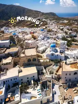 Nestled on a hilltop, Pyrgos is known for its narrow cobblestone lanes, classic whitewashed homes, and stunning island vistas ✨. Wander through historic churches, relax at quaint cafés, and soak in the tranquil, authentic Santorini atmosphere 🌿💫. A hidden gem perfect for culture lovers and photographers alike!