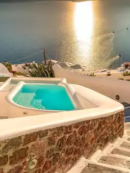 Perched atop the caldera cliffs, Imerovigli is renowned for its panoramic Aegean views, whitewashed houses, and peaceful vibe ✨. Enjoy romantic sunsets, leisurely strolls through charming streets, and cozy cliffside cafés 🍷🌿. A tranquil haven for those seeking beauty and serenity! 💫