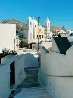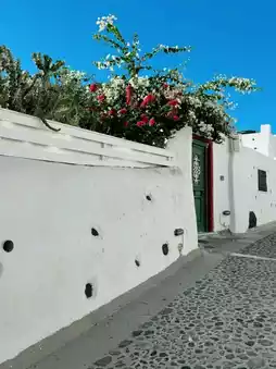 Tucked away on the island, Megalochori charms with its cobblestone streets, classic whitewashed houses, and quiet courtyards 🌿✨. Explore historic churches, savor local wines at cozy tavernas 🍷, and enjoy the authentic, tranquil vibe of traditional Santorini 💫.