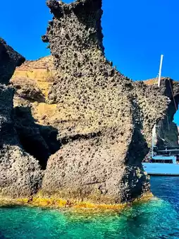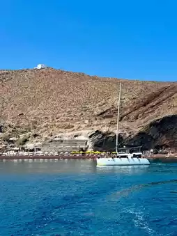 Experience the magic of Santorini’s caldera on a scenic cruise, drifting past volcanic cliffs, charming villages, and sparkling Aegean waters ✨. Enjoy sunset views, swimming stops, and delicious onboard meals 🍷🌅. A perfect way to see the island’s beauty from a unique perspective! 💫