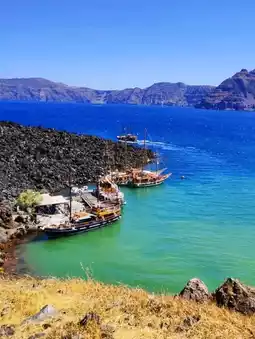 Hike the active Santorini volcano and take in spectacular caldera views 🌊✨. Then unwind in the natural hot springs, enjoying their warm, mineral-rich waters 🌿💫. An unforgettable mix of adventure, relaxation, and stunning island scenery!