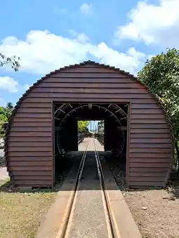 After finishing a three-day, two-night trip to Wuling Farm, we drove to Tian Song Pi Station, arriving around noon. We decided to take a short break here to rest both ourselves and the car. Tian Song Pi Station, built in 1921, was originally part of the Taiping Mountain Forest Railway and served as a midway stop between Sanxing and Qingshui Lake. Back then, it primarily transported timber from Taiping Mountain while also offering passenger services. In 2001, the Yilan County Government renovated the station, which is now one of the few remaining wooden railway stations in Taiwan. The park also offers a paid mini train ride that circles the area. Thanks to regular maintenance, the wooden station building looks quite modern and shows little sign of aging. This location has also been featured in idol dramas, attracting fans who come to take photos and check in. Although the park is not very large, after a brief rest, we were ready to head to Su'ao to satisfy our hunger, as everyone was feeling quite famished by then. (20210816)