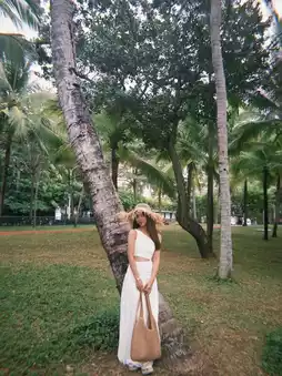 You don't need to go to a specific check-in point, just take a taxi to Haiyun Resort and walk along the beach. The blue sky, coconut trees, and sunset make for great photos. To see the sunset, go around 6 pm.