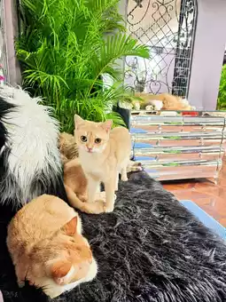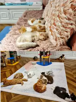 There are also three cat houses, very luxurious, the cats all enjoy it~ sleeping in different positions😝