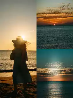 The children play in the sand and pick up seashells, we blow the sea breeze and watch the sky take pictures of the sunset.