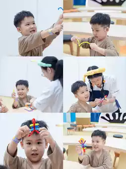 The children's playground in the hotel has parent-child activities. Mumu made her own "spring" under the guidance of her sister.