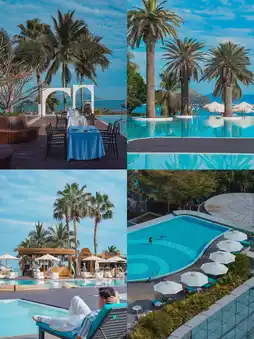 2️⃣ Infinity pool: lie down by the pool and take a bird’s-eye view, with the hotel’s main building as the background. It is recommended to wear a bright-colored swimsuit for better photos.