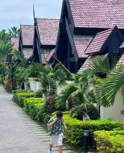 The 7,000-square-meter tropical garden is a poem written by nature itself. Canna lilies and frangipani flowers line the paths, a Thai-style white pagoda stands serenely, and stone elephants guard the tranquility of the courtyard. Pick up a fallen leaf or recline in a wicker chair, and with the dappled light and shadow, a simple click of the camera captures an Instagram-worthy masterpiece.