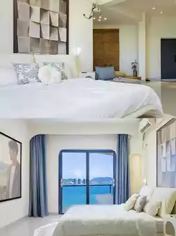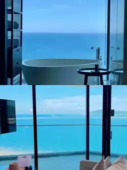 √ Panoramic floor-to-ceiling windows: Each room is equipped with extra-large floor-to-ceiling windows with a 270° panoramic sea view. You can embrace the entire sea while lying on the bed. The curtains are automatically adjusted, allowing you to enjoy a space that combines privacy and openness. √Interior with marine elements: The room is dotted with marine decorations, from the wave-textured headboard to the coral-patterned pillows. Every detail reveals the love and tribute to the sea.