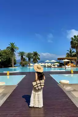 The location is absolutely perfect! Nestled between mountains and sea while still being in the city center, with Dadonghai Scenic Area right outside. Blue skies, crystal waters, swaying palm trees 🌴 - every casual photo looks like a professional shot! The hotel's Sky Eye, spiral staircase, and infinity pool make every corner Instagram-worthy 📸