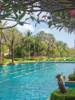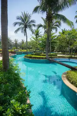 My favorite feature was the variety of beautiful swimming pools. The main pool overlooks a large lawn with a great view, the west area pool has a stylish design, and the children's pool with a water fort was my child's favorite—he didn't want to leave every day.