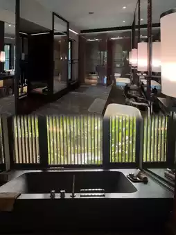 This hotel is simply a paradise for taking photos! The entire hotel was designed by two world-renowned designers, Jean-Michel Gathy and Bill Bensley, and combines modern design aesthetics with traditional Chinese cultural elements. You can take great photos in any corner. For example, the hotel's living room has completely different views during the day and at night. During the day, the water features and plants complement each other under the sunlight, and at night, the lights create a different kind of romance.