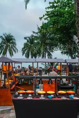 The hotel's most popular experience is undoubtedly the seafood buffet dinner with sea views. The 360° panoramic sea view captures the golden sunset of Yalong Bay, a live band plays laid-back jazz music, and the 30-meter-long seafood station is the real highlight. Freshly opened Hainan Hele crabs are full of creamy, rich roe, and the sliced East Star Grouper is as clear as crystal. The chef quietly reveals the secret: "We insist on using the same standards as 22 years ago, delivering fresh seafood directly from the fishing port every morning." When the salty aroma of the spicy fried mantis shrimp mixes with the sea breeze, you'll finally understand that the classic taste never goes out of style.
