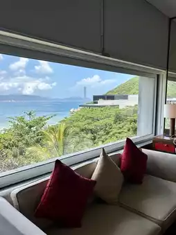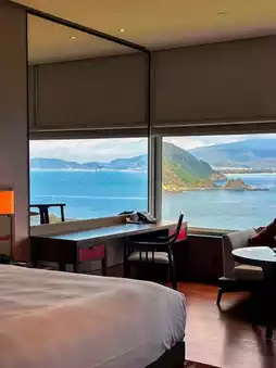 Every corner hides a clever design detail, even the lobby corridors feel like strolling through a gallery~ The 270° floor-to-ceiling ocean-view windows are absolutely stunning—you can take in the sea and sky right from your bed!