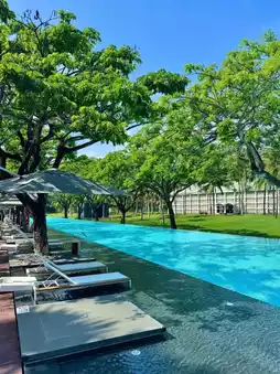 Facilities: The hotel’s pool is a standout—a 130-meter outdoor pool that blends into the sea and sky, perfect for photos! There’s also a private beach with soft sand and crystal-clear water, ideal for soaking up the sun.