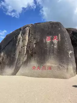 Introduction: Tianya Haijiao Stone refers to two rocks in a group of rocks several kilometers west of Sun and Moon Stone. The east side of Tianya Stone is engraved with the word "Tianya" written by Cheng Zhe, the governor of Yazhou in the 11th year of Yongzheng's reign; the word "Haijiao" on Haijiao Stone was engraved by Wang Yi, a major general of the Kuomintang who was recently transferred to the commander of the Qiongya Garrison Command on January 8, 1939.