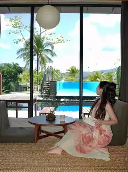 Backed by lush green mountains ⛰️ and facing the South China Sea, you'll wake up daily to the sound of waves and birdsong. Just a 10-minute drive to Yalong Bay Beach, where the soft white sand and turquoise waters 🌊 are incredibly soothing!