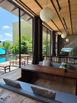 The Zen-inspired decor is full of charm 🈵, with every window framing a picturesque landscape 🎨—so healing!