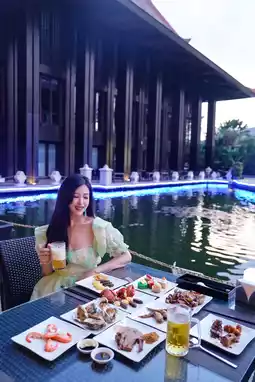 When evening comes🌆, the lakeside barbecue buffet sets the perfect mood! Sitting by the lake, feeling the evening breeze🌬️, watching lamb chops, prawns, and oysters sizzle on the grill🥩🦐🦪, and washing it down with an ice-cold beer❄️🍺, the lively atmosphere and happiness explode!